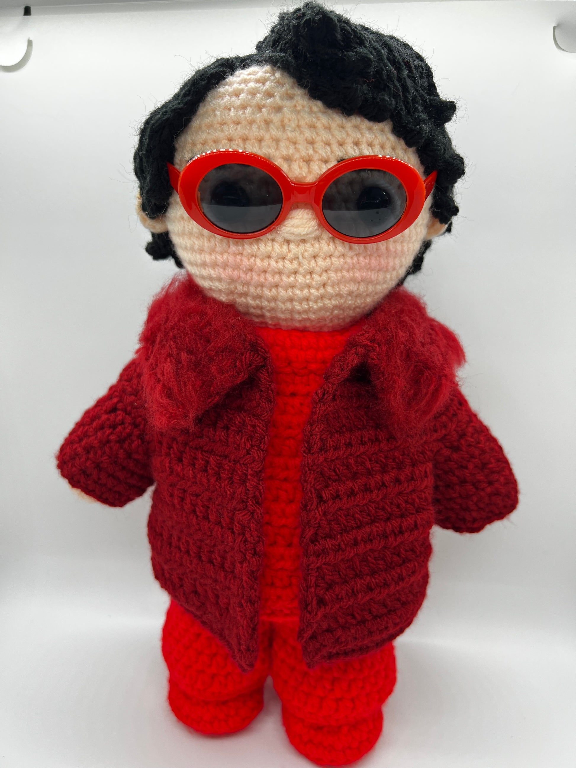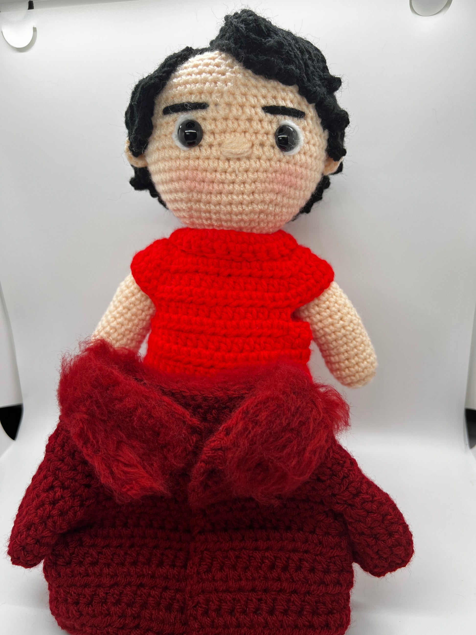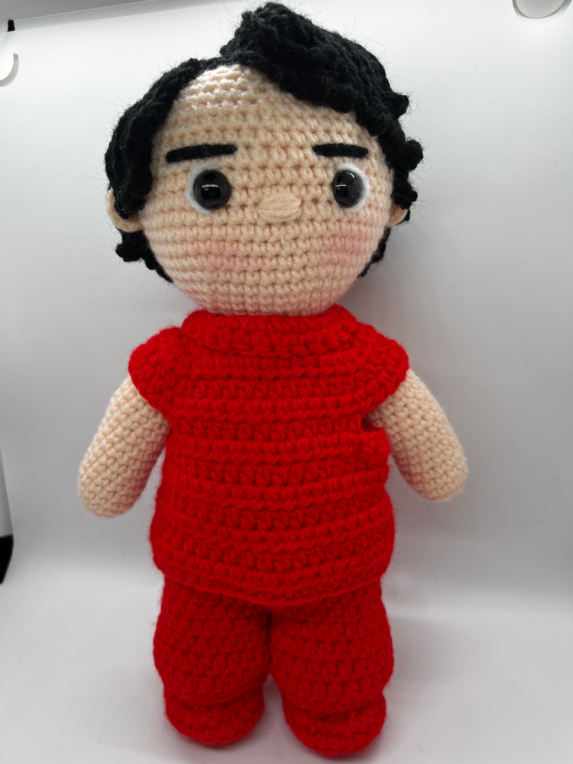 - The doll is made with 100% acrylic yarn, filled with polyfill and has plastic safety eyes.