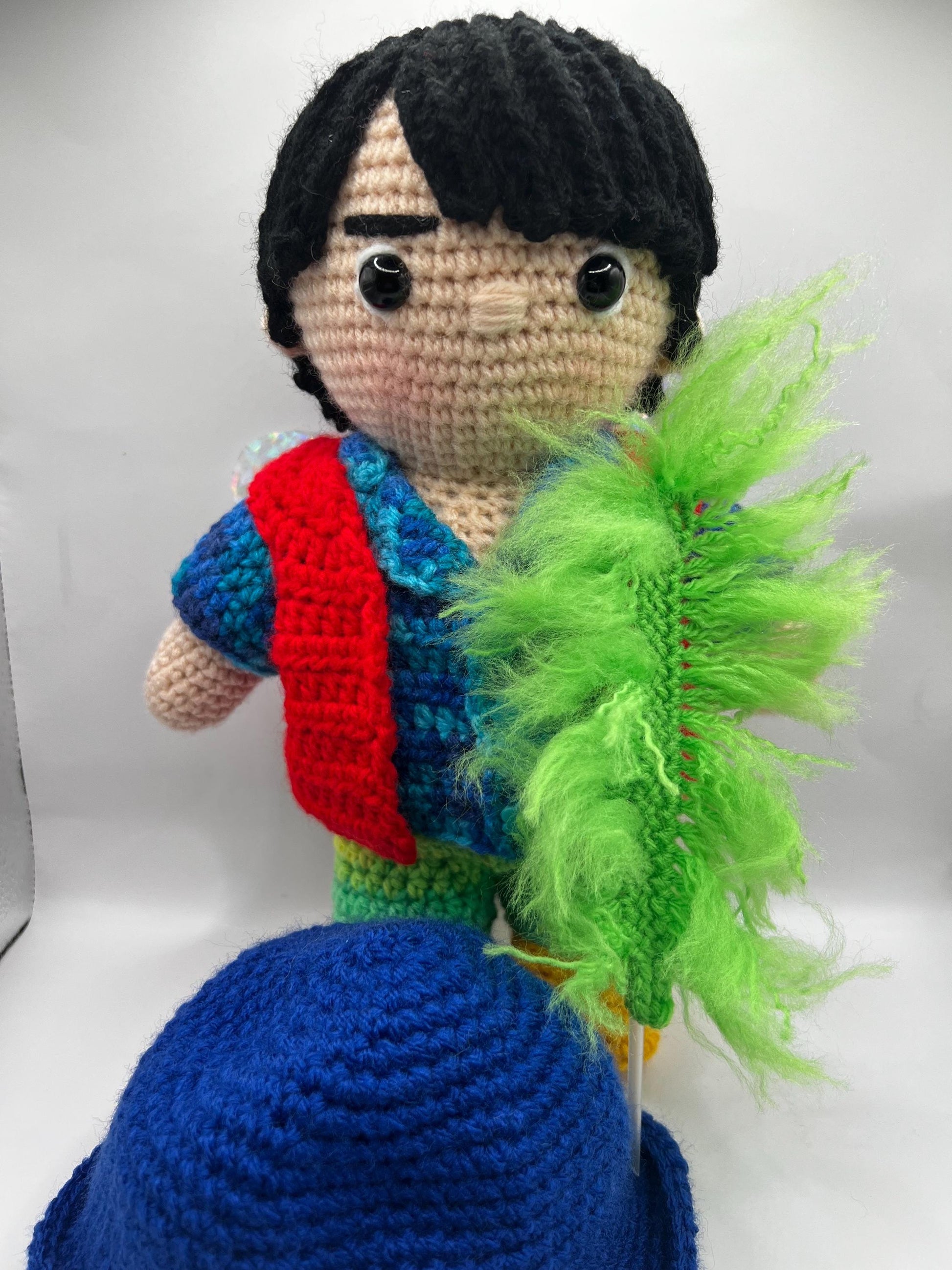 - This doll is commemorating this iconic look. It stands approximately 11 inches tall, and with the feather on the cap, it is about 20 inches tall in total.