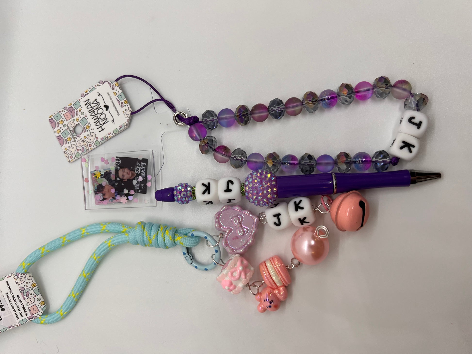 Showcase your love for JK with this exclusive fan set, featuring a magnet, bag charm, phone strap, and beaded pen. Each item is crafted with attention to detail and quality materials, combining style, functionality, and playful charm. Lightweight and durable, this set is perfect for accessorizing your everyday essentials, personal use, or gifting to fellow JK fans.